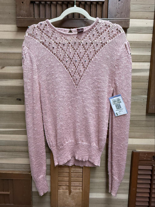 Pink Acrylic Long-sleeved Sweater See-Through Deep Neck Line with Colored Pearl Accents Size L