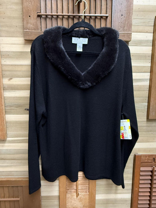 Maggie McNaughton Black V-Neck Long Sleeve Sweater with Removeable Faux Fur Trim Size XL