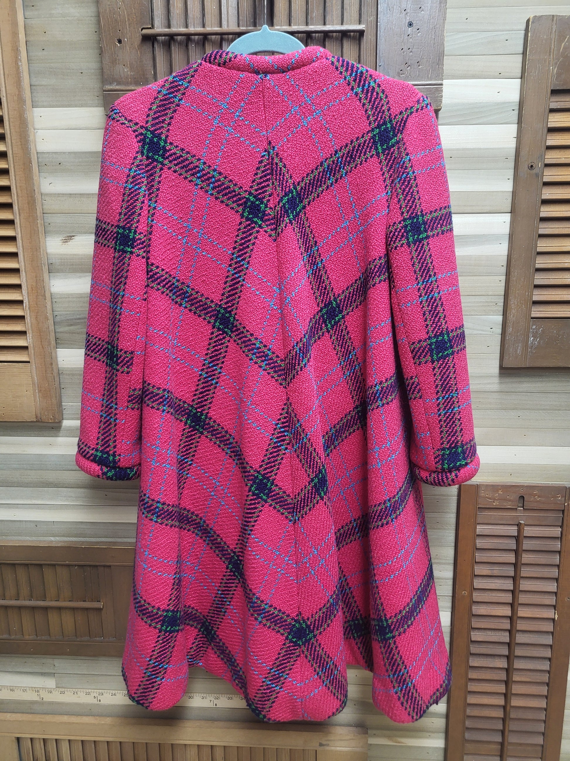 1970's Plaid Pink & Purple Lined "Saks Fifth Avenue" Kip Carpenter Exclusive 4 Latching Button Front