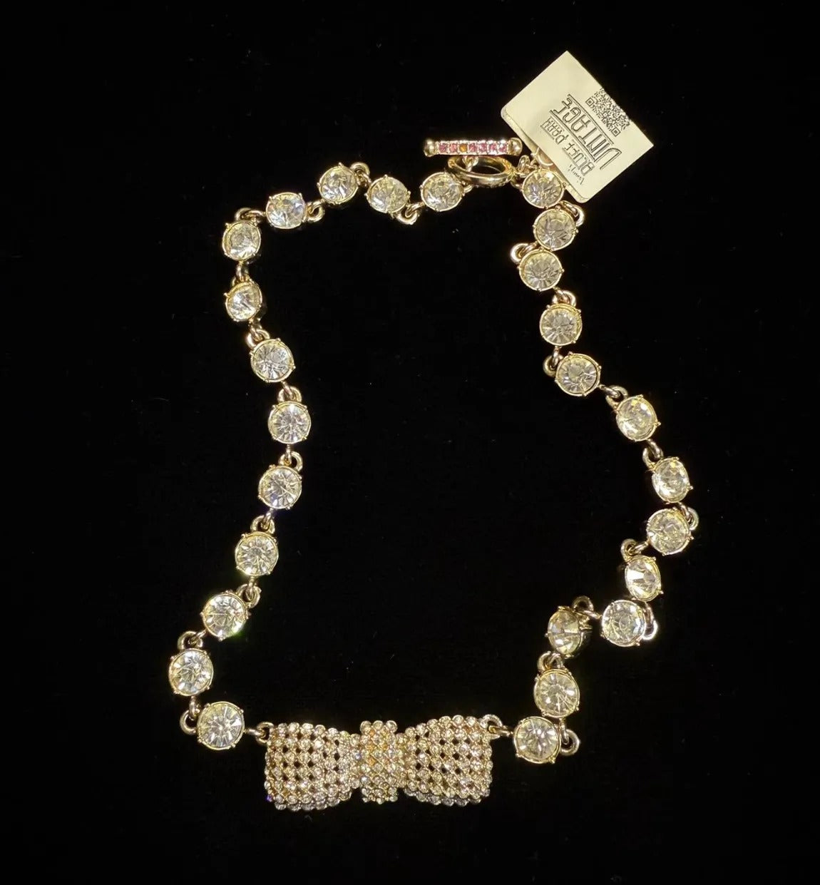 Ann Taylor "Brilliant Bow Collection" Statement Necklace Gold-tone Pink 18 Inches