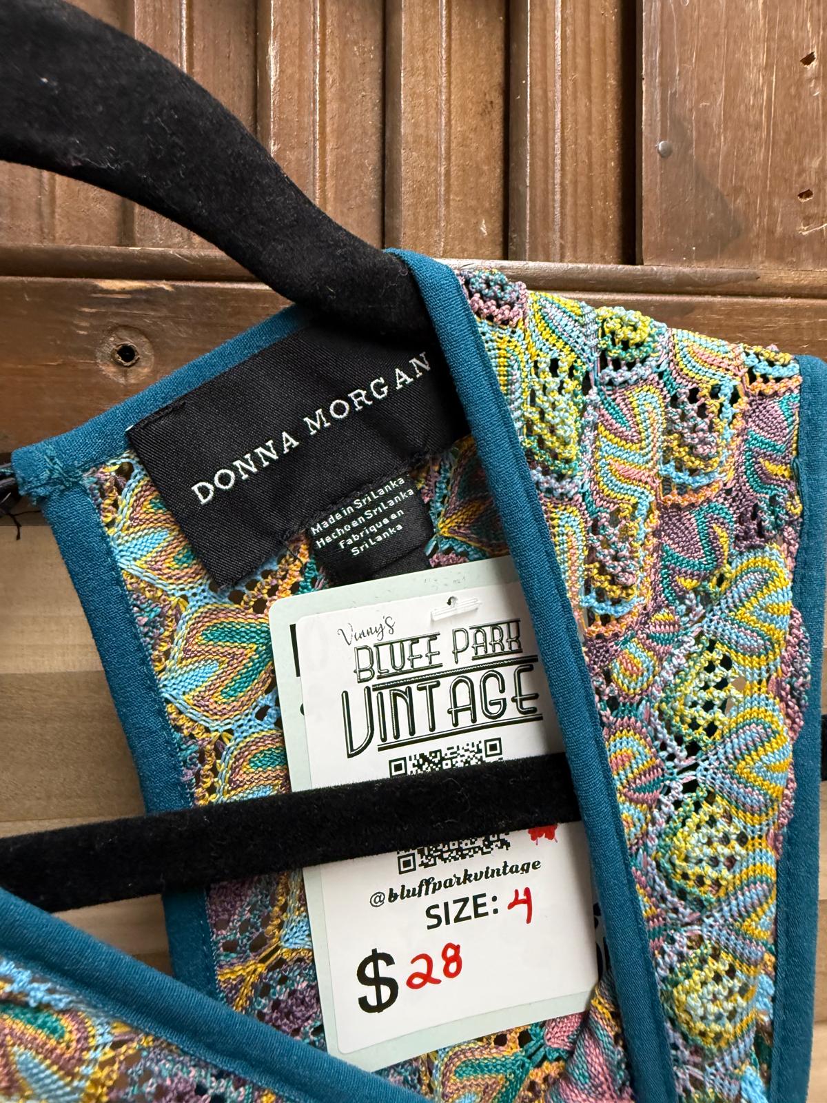 Embrace effortless bohemian charm with the Colorful Donna Morgan Sleeveless Crochet Maxi Dress Size 4.. This vibrant, sleeveless maxi showcases intricate crochet details that add texture and a handmade feel. Its flowing silhouette ensures comfort and freedom of movement, perfect for warm days or festive evenings. Stand out with the rich colors and unique design that evoke a carefree, gypsy spirit wherever you go.