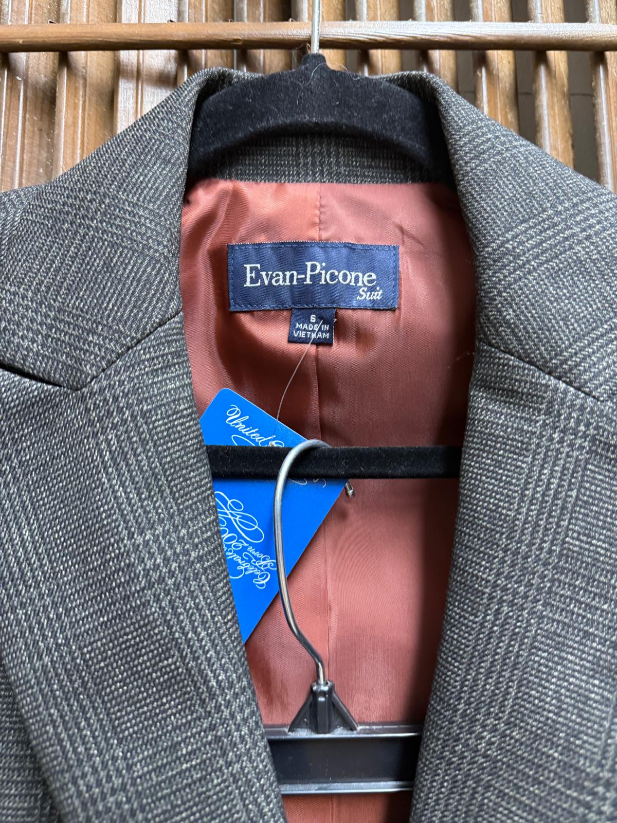 Refresh your professional wardrobe with the Evan-Picone gray plaid pants suit in size 6. Its fully lined design offers both comfort and a sleek finish, while the timeless plaid pattern adds a refined touch. Ideal for the office or formal events, this suit delivers a perfect balance of classic elegance and contemporary style to help you make a confident impression.