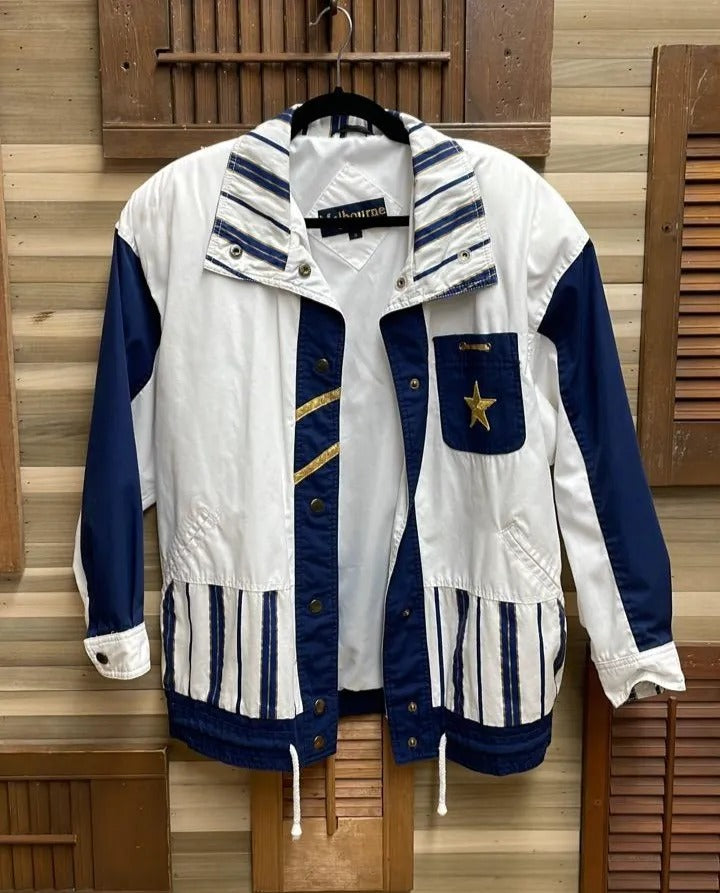 Set sail in style with the "Melbourne Classix" jacket, featuring crisp white and blue nautical vibes that bring a playful breeze to your wardrobe.