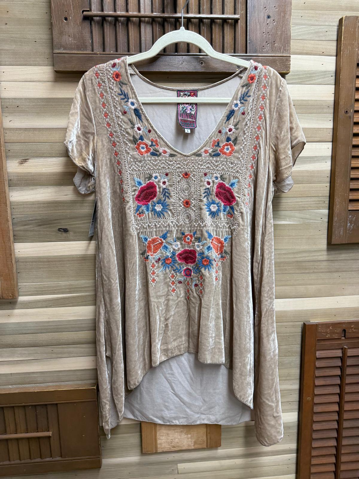Retro "Johnny Was" Beige Tan Rose Silk Rayon Velvet