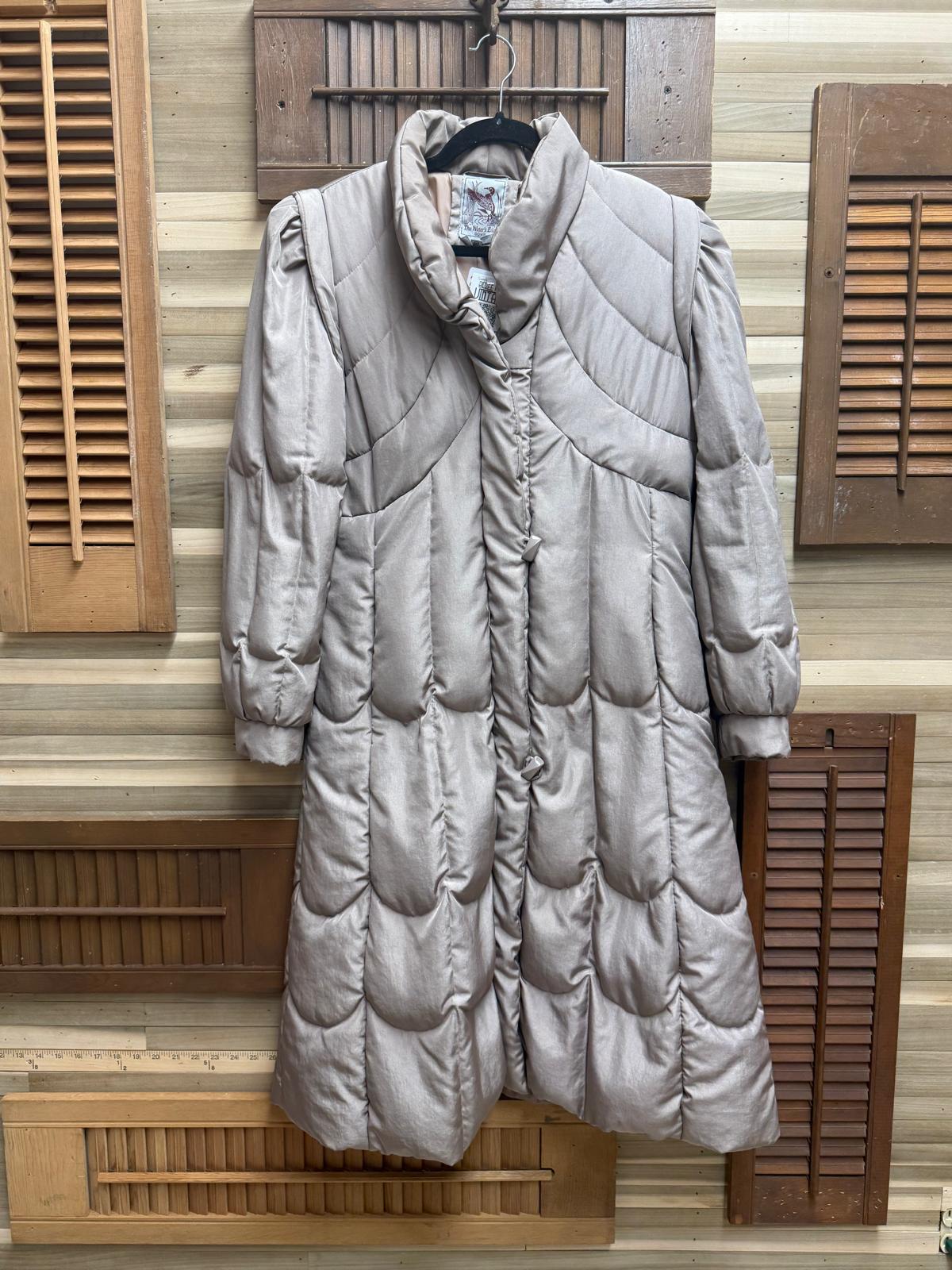 Quilted “The Waters Edge” Gray Down Trench Coat – Size Medium