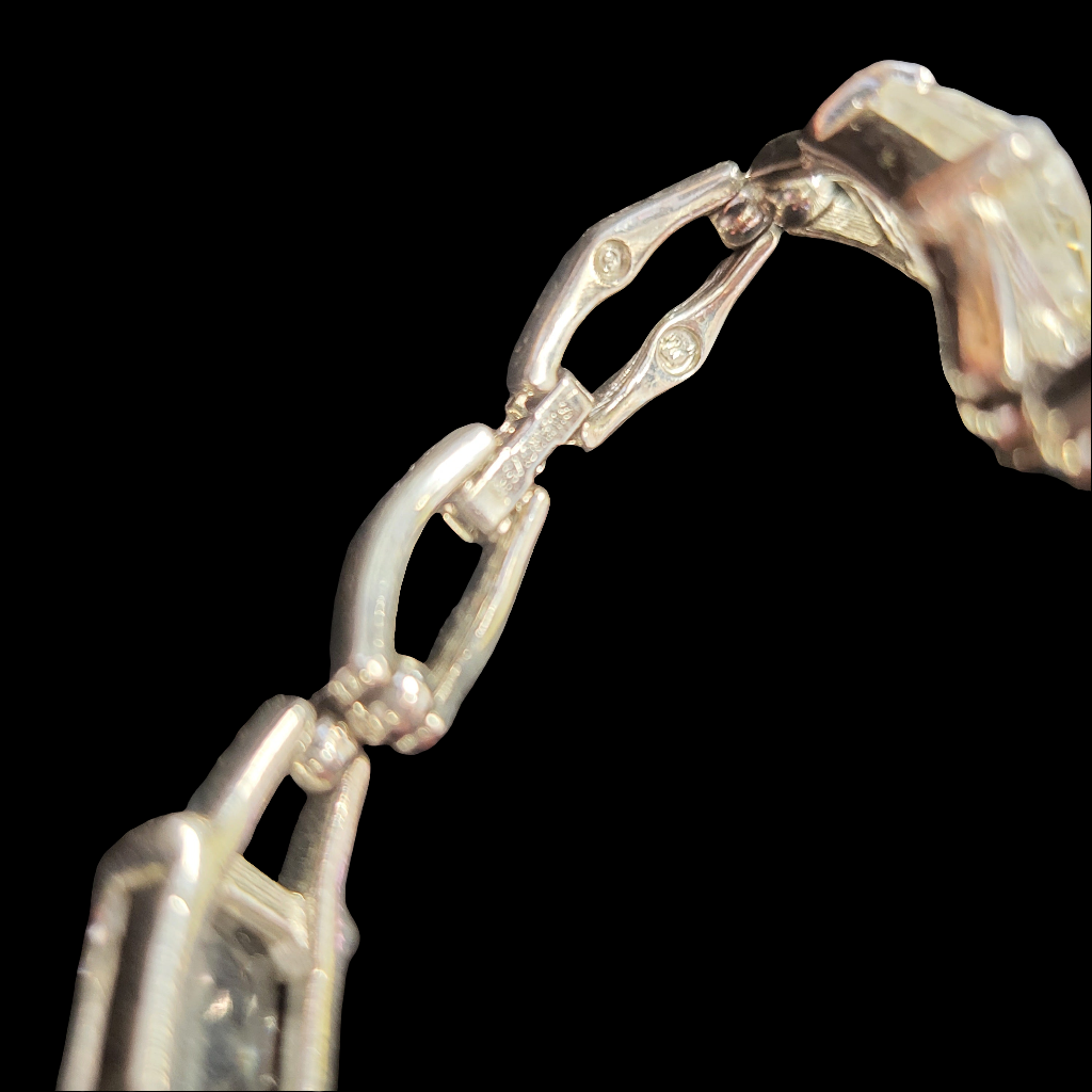 This 1980's Swarovski Signed & Swan Mark Emerald Cut Crystal 7.5” Bracelet exudes vintage elegance. The stunning emerald cut crystals paired with the iconic Swarovski signature add a touch of glamour to any outfit. A timeless piece that is sure to catch the eye.