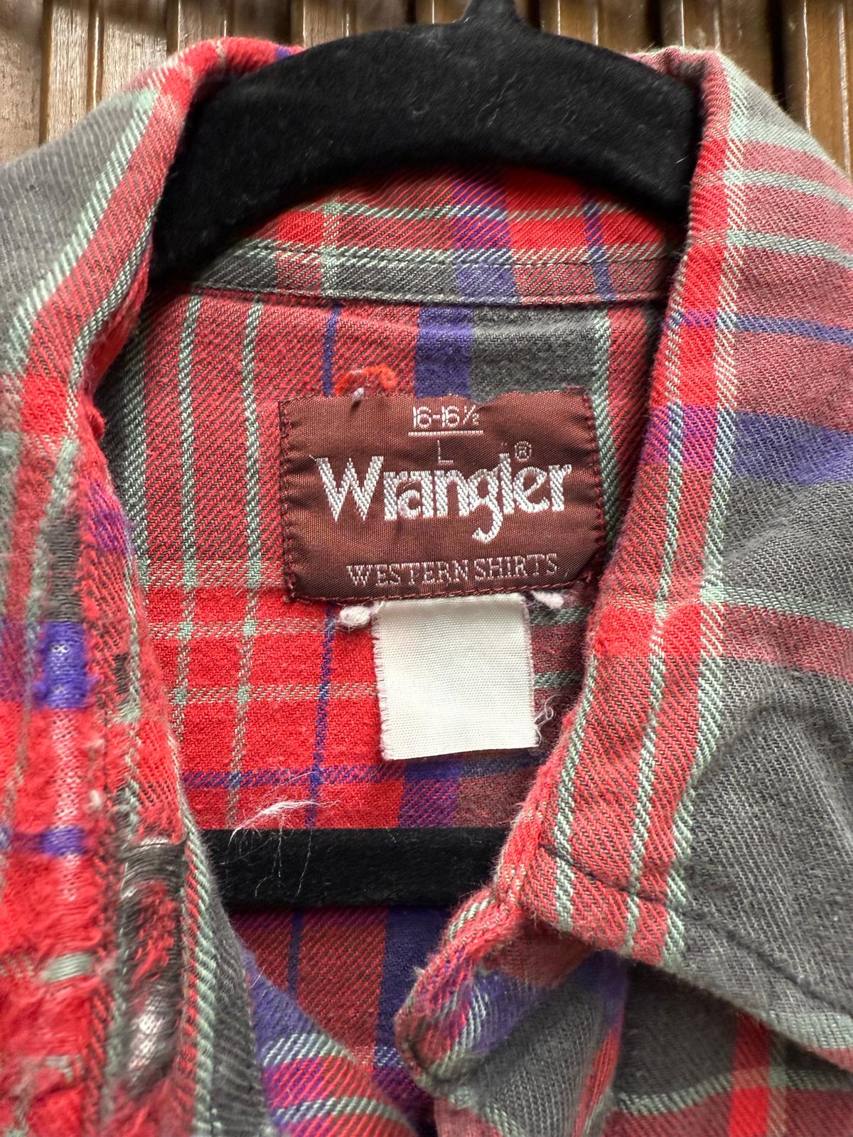 Wrangler Red Plaid Button Down Western Flannel Pearl Snapbacks